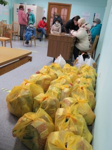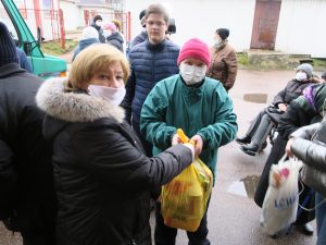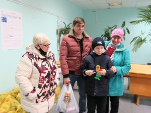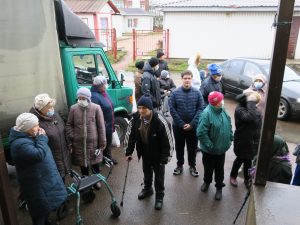 Vi laget, som lovet, i går og i dag en kampanje for Julen og det Nye året. I går, den 25.11.2020, delte vi ut matpakker til handikappede og funksjonshemmede barn i Tokarevo og Dyatlovo. I dag, 26.11.2020, ble matpakker delt ut til funksjonshemmede i landsbyen Sovetsky. Karina vil lage en film, og vi skal vise den til deg senere. Takk for alt dere gjør for mennesker. Uten deres hjelp ville vi ikke ha vært i stand til å gjøre slike handlinger. Folk var veldig fornøyd.
