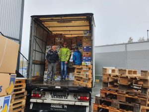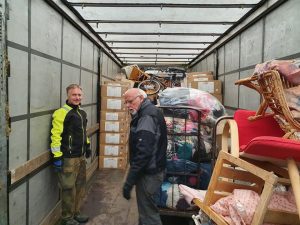 Så er en ny trailer lastet opp. Først ble 50% lastet opp på Kleppe, deretter ble resten lastet opp i skibåsen 32 Kristiansand, på lageret vårt. En trofast og flott gjeng gledet seg over at vi kunne laste opp en trailer og sende den avgårde. Må det bli til velsignelse der den kommer.
