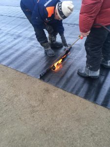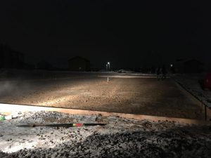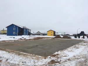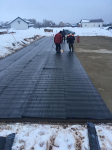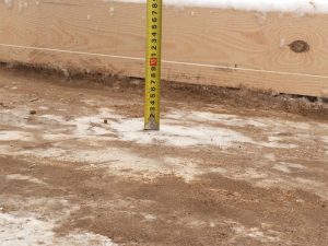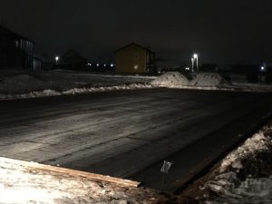 Et betongpreparat på 100mm ble støpt under grunnmuren og det ble laget vanntetting. Nå forbereder vi forskaling og armering til betongfundamentplaten.