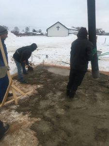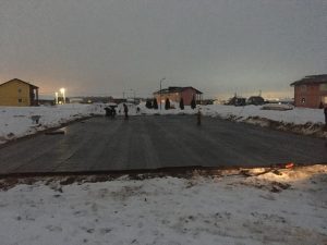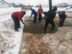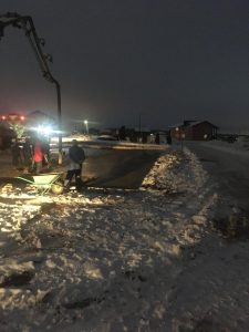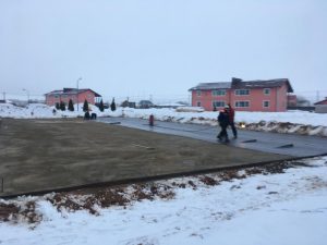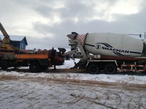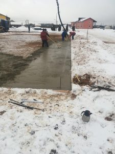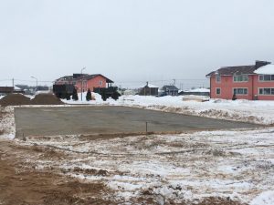Alle forberedelser til fundamentet, pukk, sand, vanntetting er støpt og fullført.