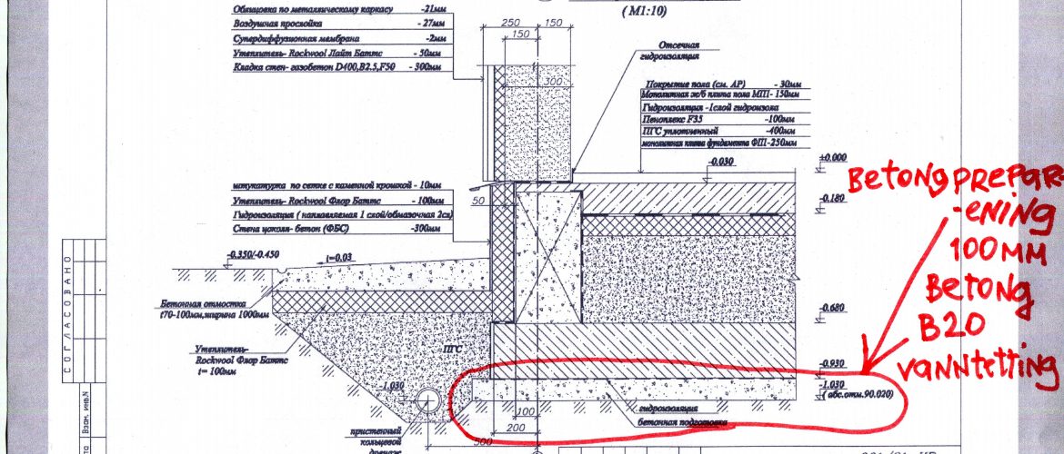 Alt arbeid utføres strengt i henhold til prosjektet, jeg sender en tegning av fundamentdelen.