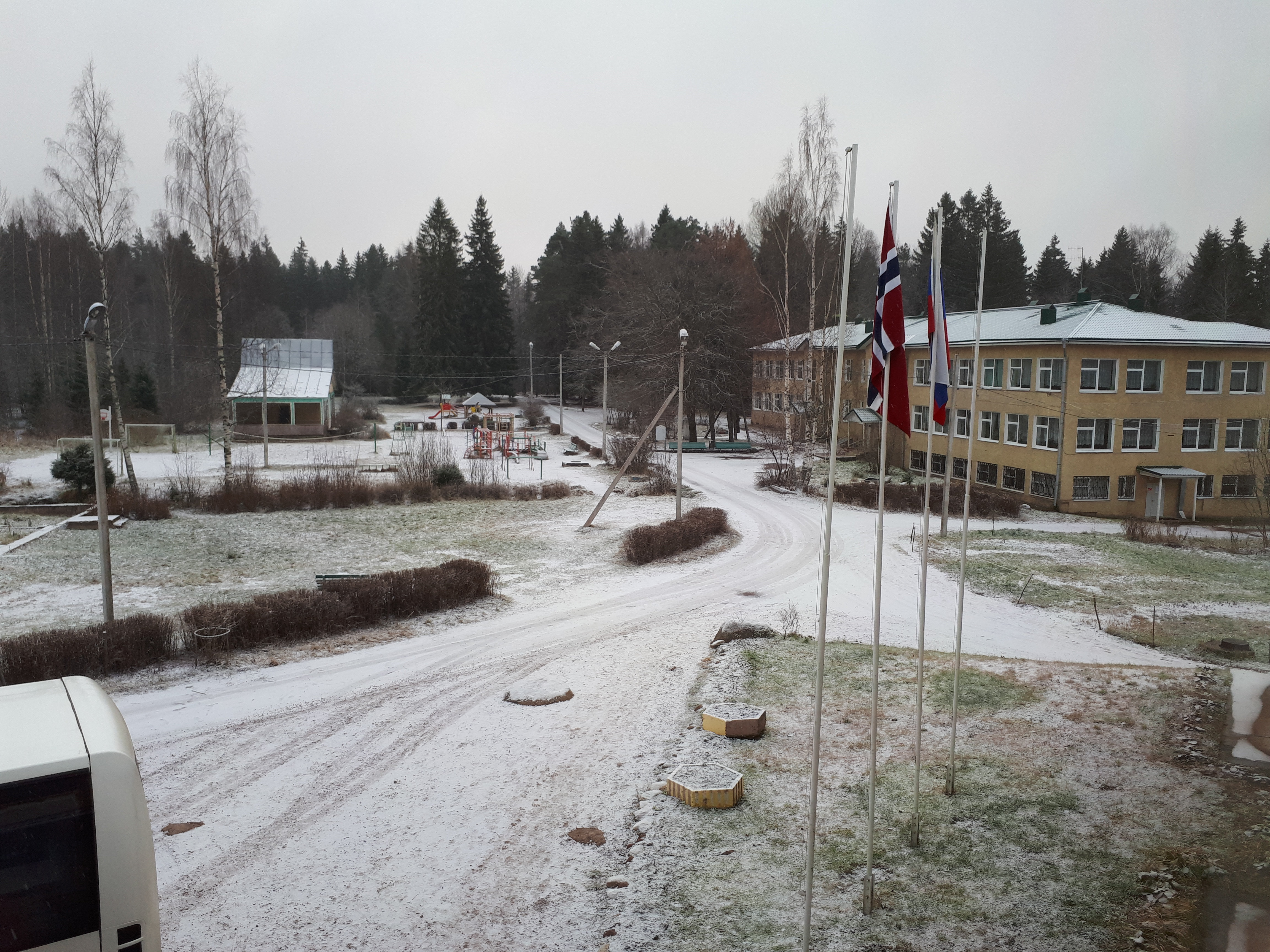 Tatt fra vinduet på Agape – vi ser Sosnovi Mys i bakgrunnen