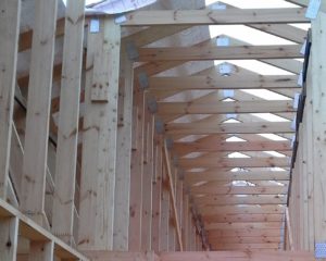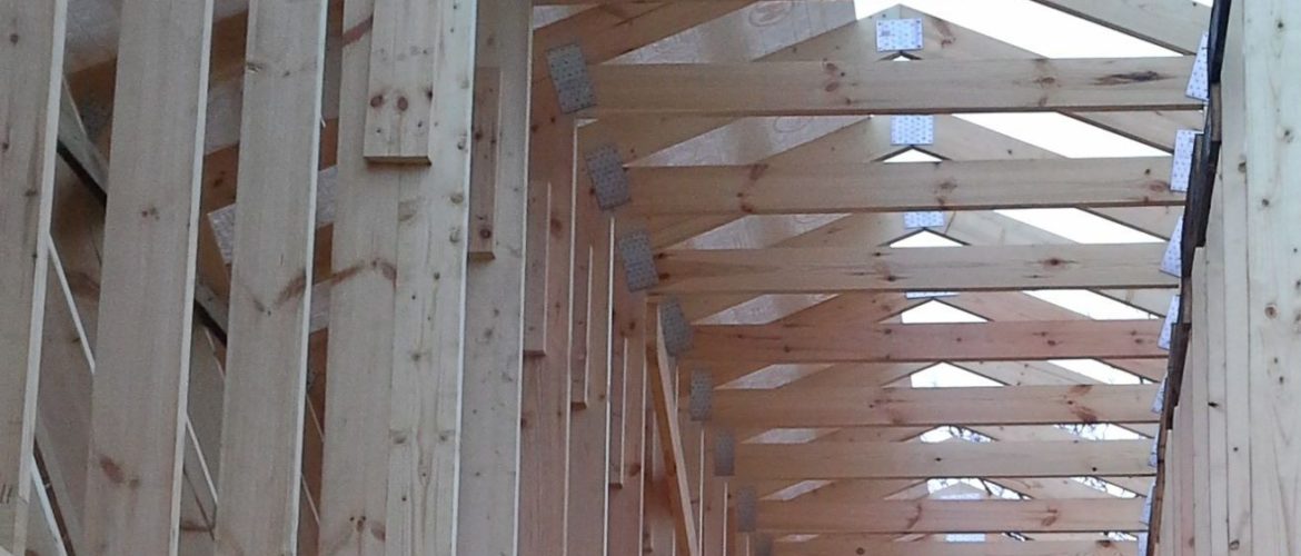 Takstolsystem er montert på begge sidene av bygg.