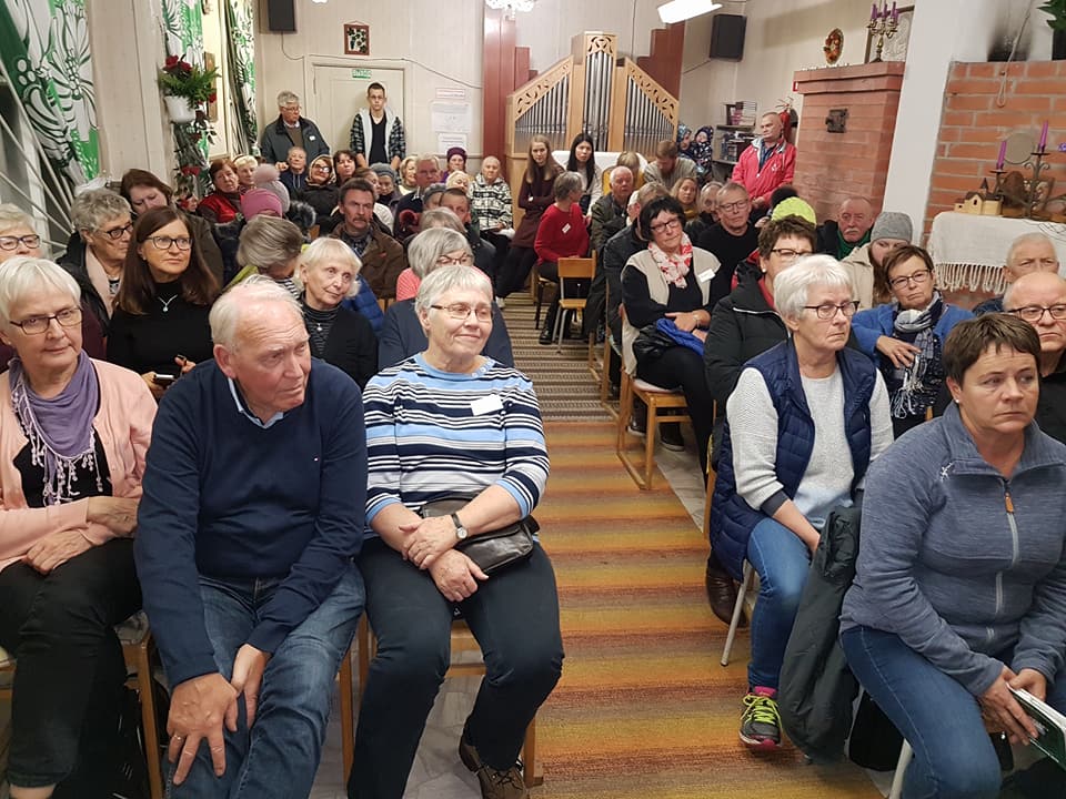 - Omtrent hele forsamlingen reiser seg og ber om forbønn