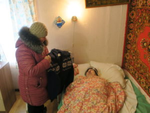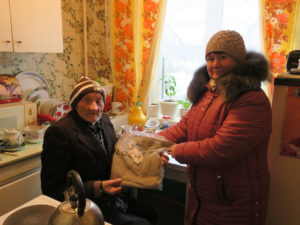 «Лада» обслуживает пожилых людей на дому (Токарево, Дятлово, Советский). На Рождество наши социальные работники передали им подарки (теплые зимние вещи).