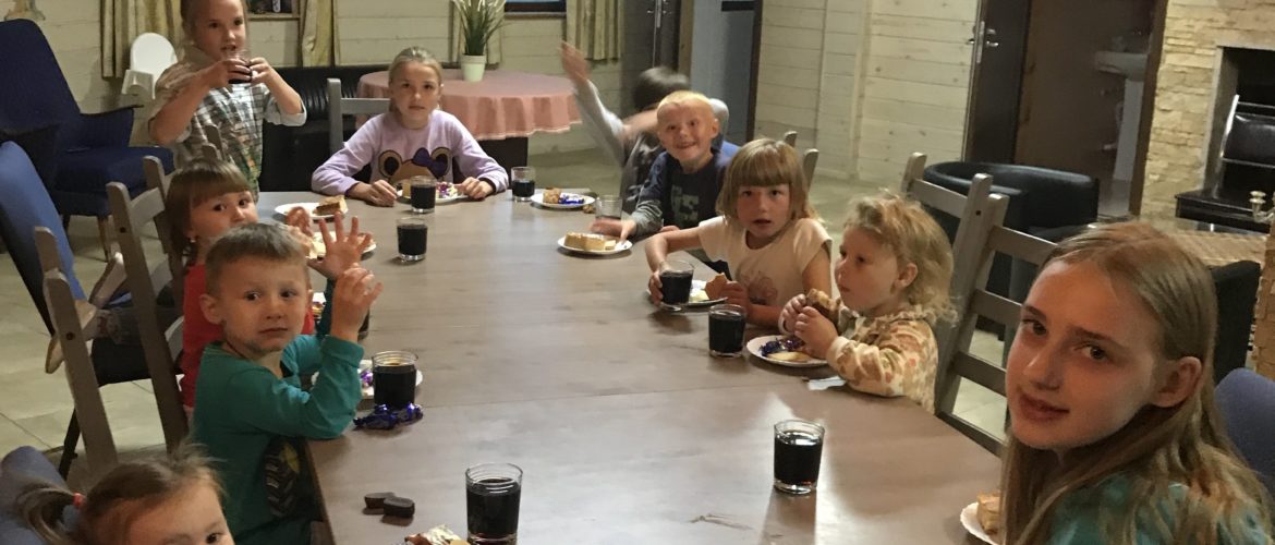 6.09. På Vårsol var det en feiring med gratulasjoner til de som hadde bursdag i juli, august og september. Barna deltok i konkurranser, bursdagsbarna mottok gaver, det var en fin tefest, og til slutt så barna på en tegneserie over temaet: «grønnsakenes kristne liv». Dmitry Sviridov og Alexey hjalp oss med å ordne det slik at barna kunne se tegneserien.