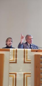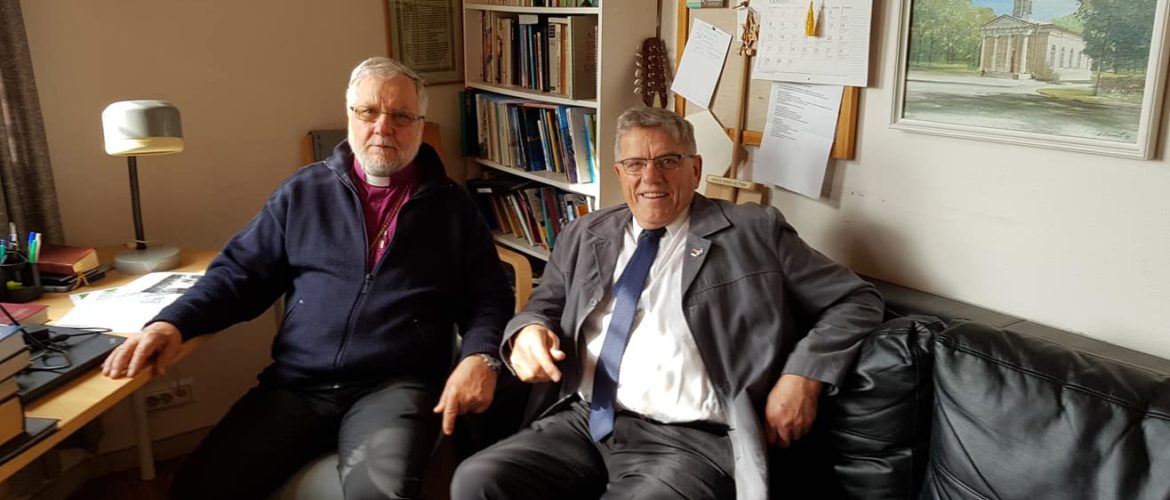 Siste arbeidsdag i Russland på denne turen. Den startet med Gudstjeneste i en kirke der de hadde 2 Gudstjenester, en kl. 10.00 og en kl 14.00. Mellom der hadde Helge og musikerne en konsert. Før Gudstjenesten møtte jeg en gammel venn. Biskop Ari Kukaupi. Vi fikk en nyttig samtale før jeg skulle tale på Gudstjenesten og Helge og og musikkere synge. Etter Gudstjenesten ble det konsert. Som samlet mye folk. Konserten her og på de andre stedene har for meg som muligens er noe inha…bil i vurderingene, men for meg har de vært en stor opplevelse. Tema for konsertene har vært «Håp» det har de formidlet på en sterk og god måte synes jeg. Etter dette kjørte vi mot Vyborg, stoppet på «Agape», Barnesanatoriet og så på «Dikony». En innholds rik reise avsluttes ved at vi tar i på hotell i Vyborg. Da sier jeg igjen. Takk at også jeg fikk være med.