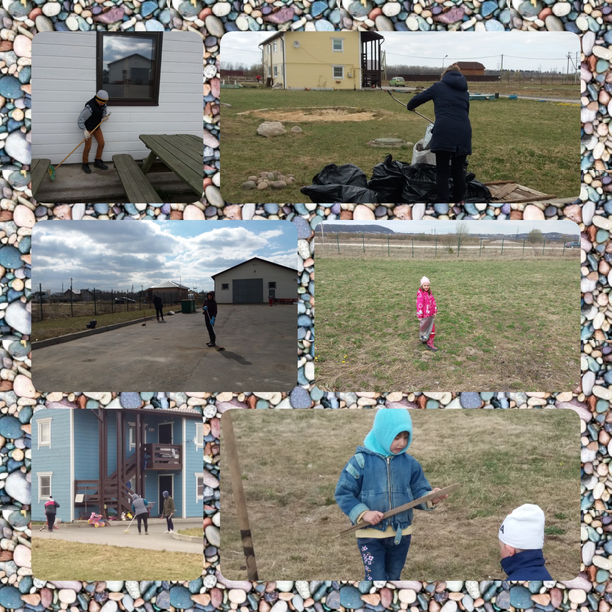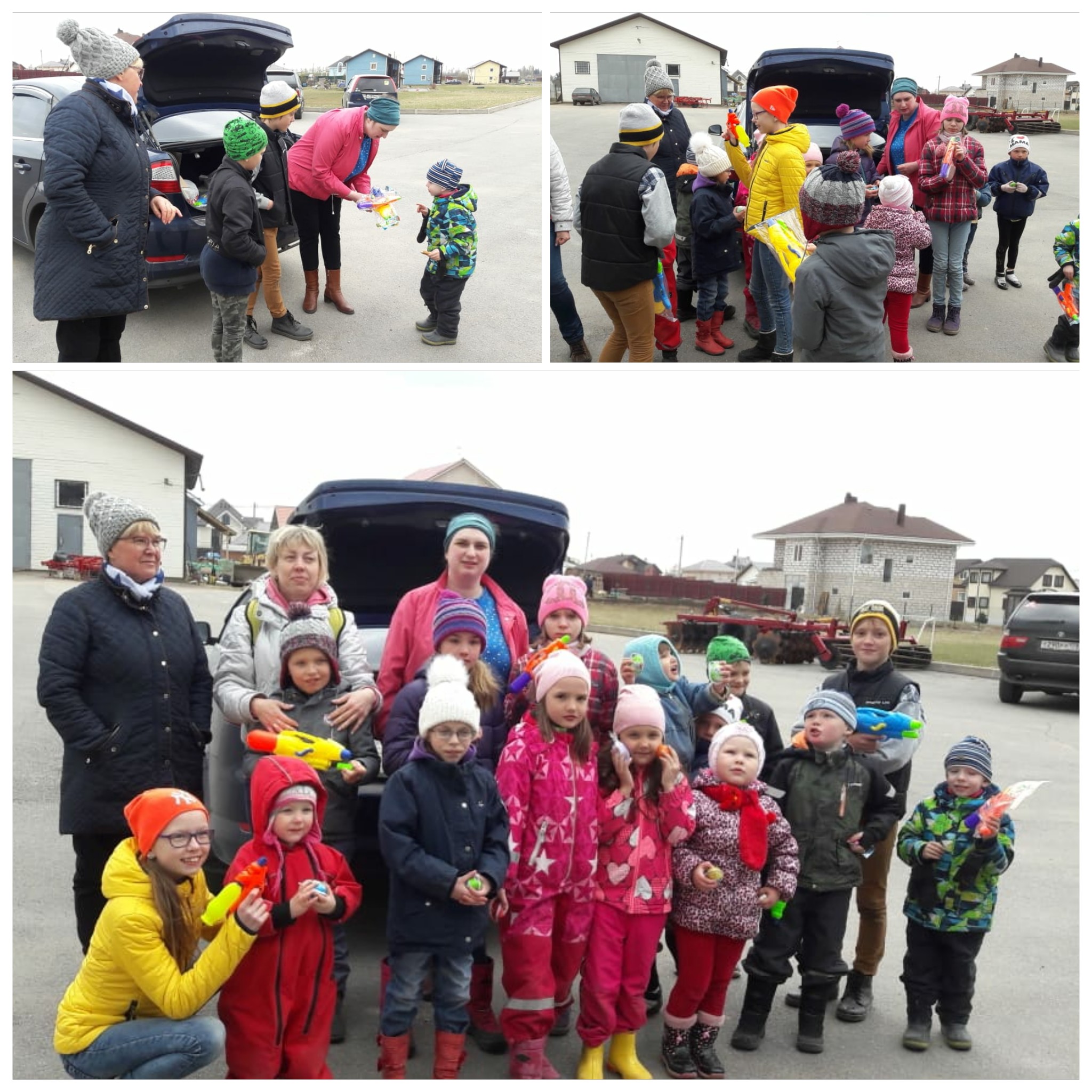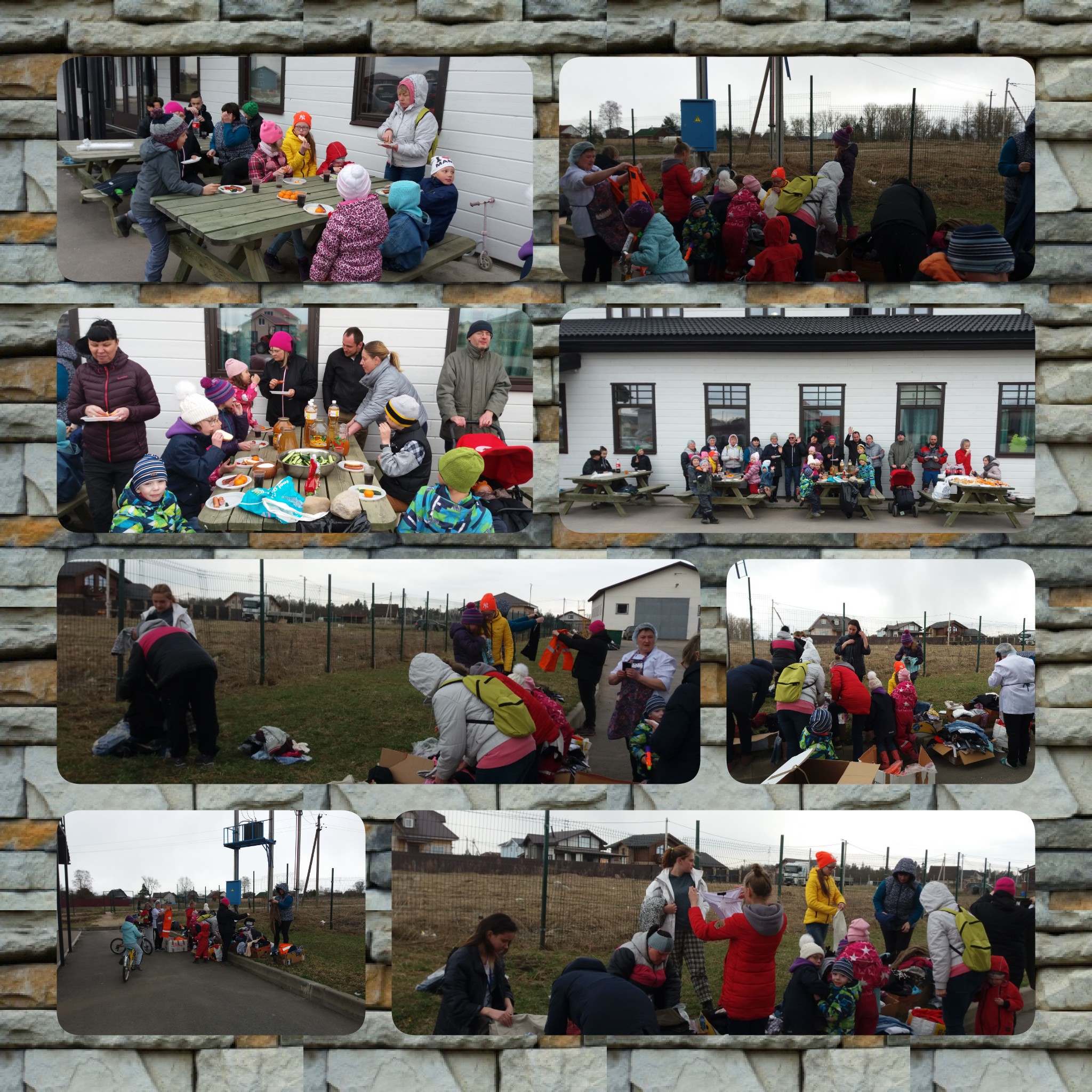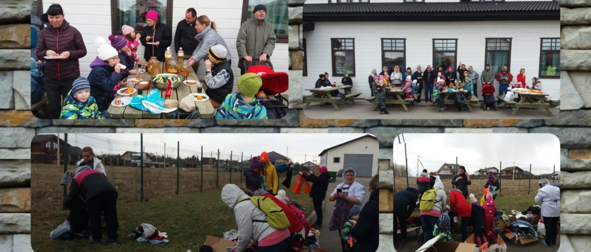 Bilde 4-9. Lørdag 20.04 i barnebyen Vårsol. I bønn til Herren om velsignelser og hjelp, arbeidet beboerne sammen på en varm april-ettermiddag med å rydde barnebyens område etter vinteren. Premier ventet på barna, og alle fra unge til gamle – fikk pølser. Gavene til barna og pølsene er betalt med donasjoner fra Spring Sun Foundation og Master Company. Det ble distribuert humanitær hjelp, som vi takker «Hjelp til Russland» for.