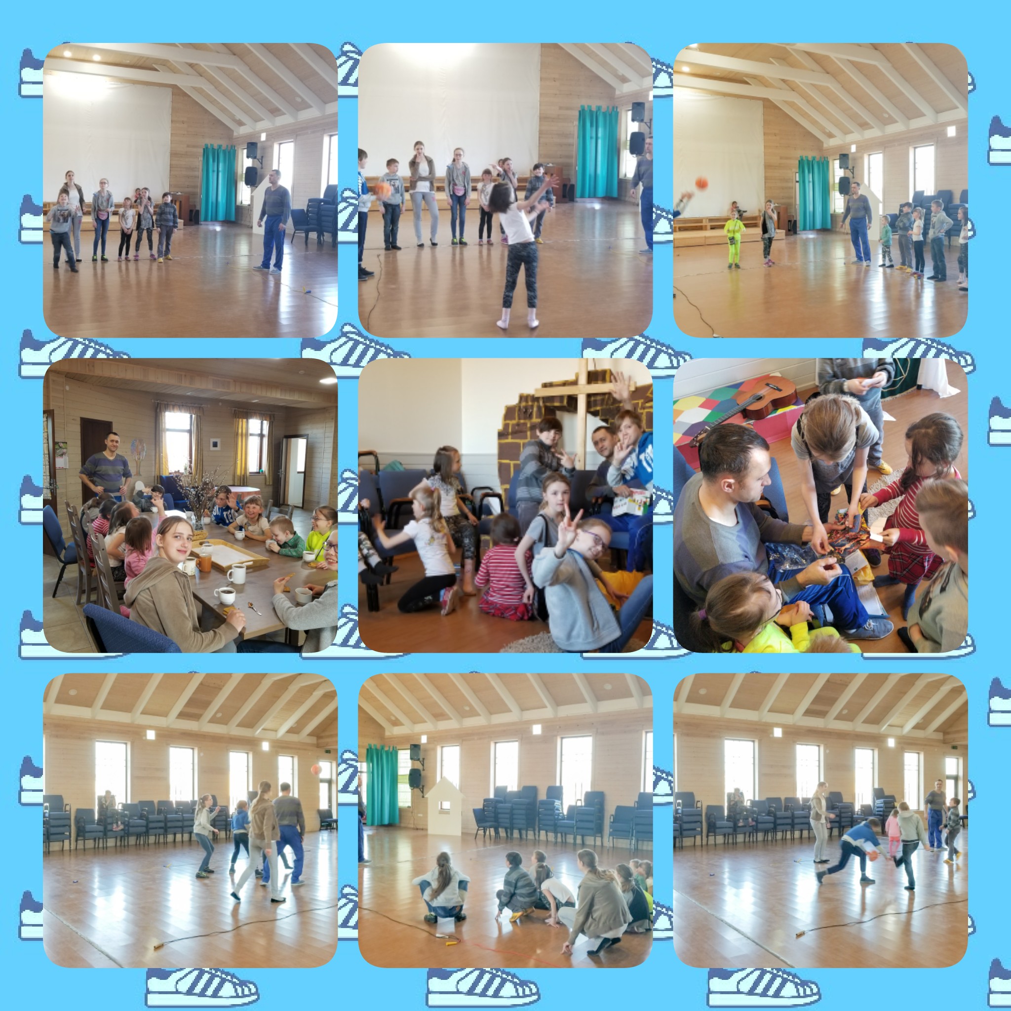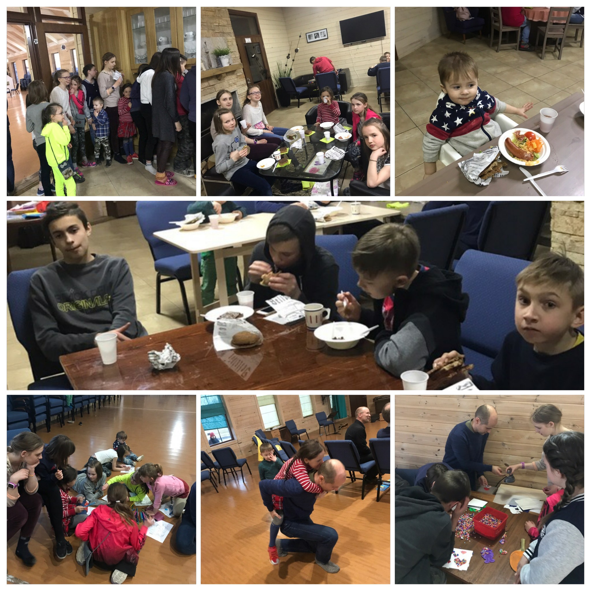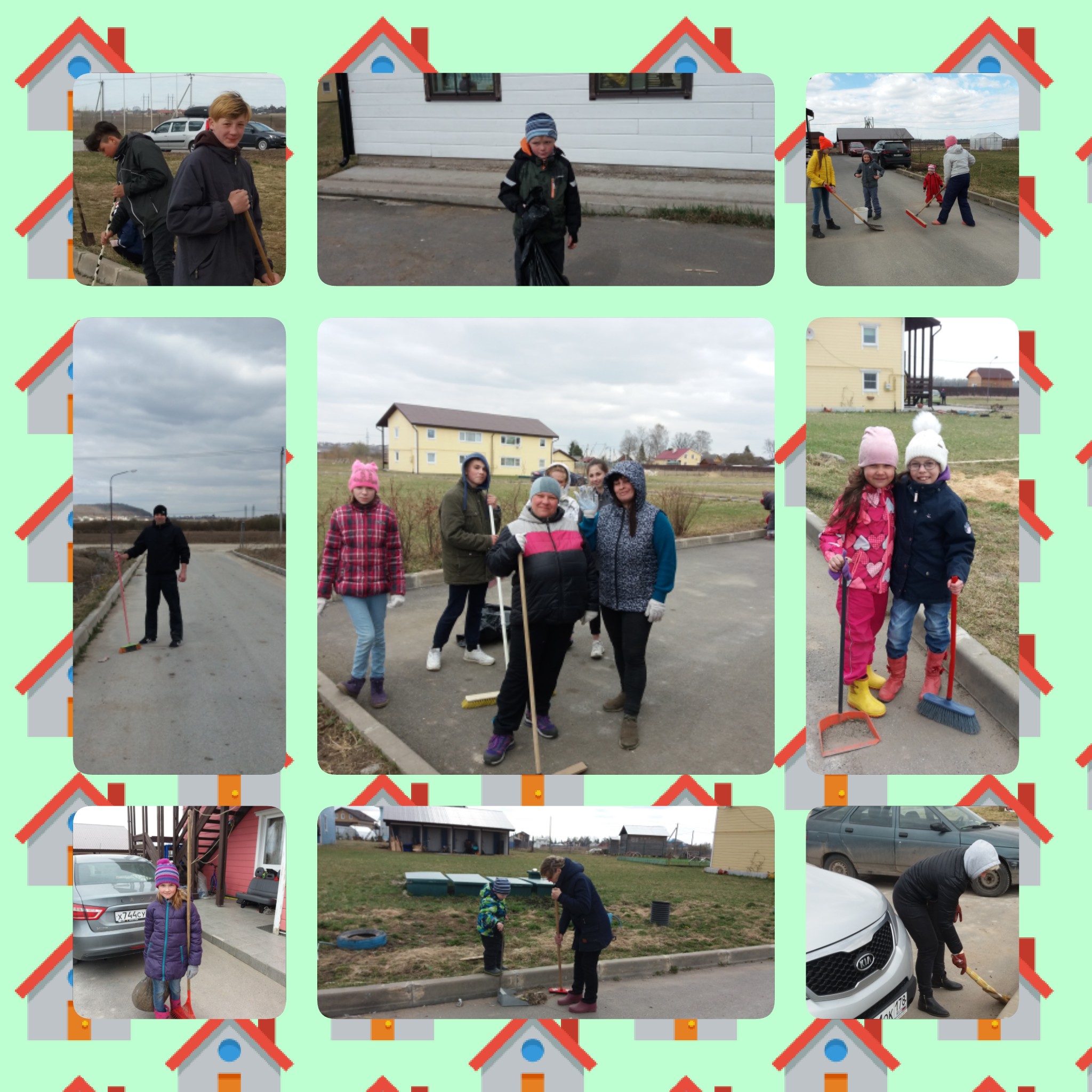 Bilde 4-9. Lørdag 20.04 i barnebyen Vårsol. I bønn til Herren om velsignelser og hjelp, arbeidet beboerne sammen på en varm april-ettermiddag med å rydde barnebyens område etter vinteren. Premier ventet på barna, og alle fra unge til gamle – fikk pølser. Gavene til barna og pølsene er betalt med donasjoner fra Spring Sun Foundation og Master Company. Det ble distribuert humanitær hjelp, som vi takker «Hjelp til Russland» for.