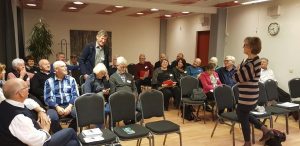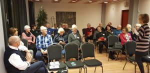Her er vi på første bli kjent samling på denne turen. Dette er på Hotell Gustav Frøding i Karlstad. Nå er vi på båten fra Stockholm til Helsinki. Alt vel med oss.