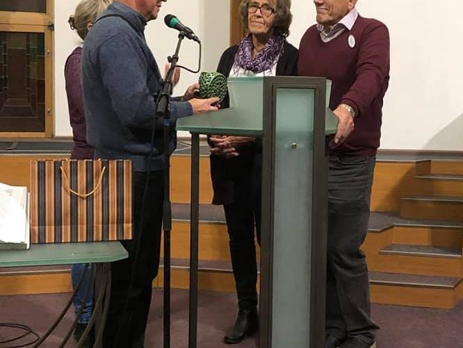 Takkegave fra Baptistkirken for støtte og hjelp gjennom 30 år åndelig og økonomisk. På møte var det mange som på direkte spørsmål om de ba om hjelp for å bli frelst, så bekreftet de det.