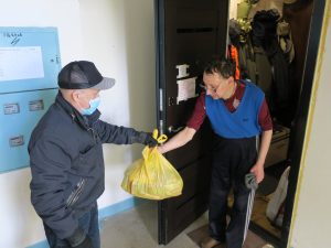 Прикрепляем к письму фотографии, где наши сотрудники оказывают благотворительную помощь бедным россиянам.
