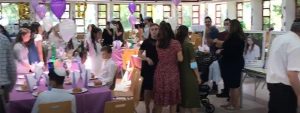 Det ble servert et deilig måltid og feiringen fortsatte med visningen av en film om Neve Michaels B’nei Mitzvah, fantastiske taler, en musikalsk forestilling iscenesatt av barna våre som deltar i Sulamot musikkprogram og som kulminerte med at barna ble ledet med sang og dans til bussen som skulle ta dem til Tiberias og Zefat.