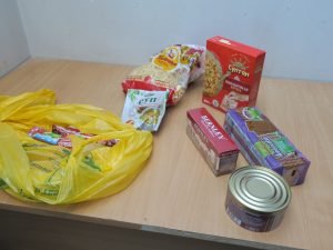 – Utstedte klær (150 kg.) Og dagligvaresett (70 stk.)
