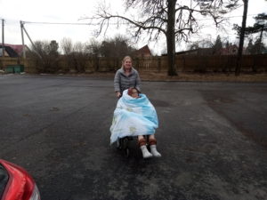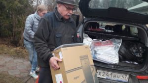 Takk til sjåførene på bussen, de kom med varer til lageret vårt i Kotka. De kom med senger og klær og alt mulig annet.